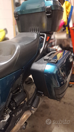 Completa di borse e bauletto in tinta con la colorazione della moto.