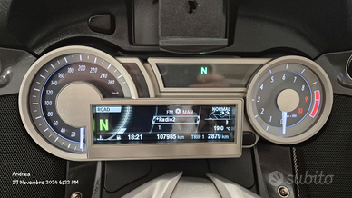 Chiusura centralizzata, luce a pavimento e nel top case, selle e manopole riscaldate, radio, cruise controlli, abs, esa, tcs, luci full led, faro anteriore adattivo, frecce dello z4, tre diverse mappature centralina, parabrezza regolabile elettricamente, borsa serbatoio, e borse aggiuntive per bauletti laterali fatte a mano con copertura antipioggia, due supporti telefono. Portapacchi isotta alluminio nero opaco su tutti i bauletti.