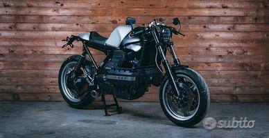 BMW K100 cafè racer customizzata da OFFICINE SBRANNETTI di La Spezia, officina partecipante al reality "Lord of the bikes" su Sky. Moto unica, numerata #049 e denominata "Argento vivo". Personalizzata in ogni sua parte, dalla ciclistica alla carrozzeria e la verniciatura, sella artigianale, dall'impianto elettrico alla strumentazione e l'illuminazione a led. Per chi è interessato mi contatti che si inviano altre foto e info sui lavori eseguiti. Iscritta FMI con assicurazione agevolata e esente bollo.