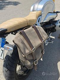 Vendo, per inutilizzo, bellissima BMW NINE T del 2016, ( bollo 2026 pagato e revisione in ordine) con SOLI 9300 km, pneumatici e batteria cambiati anno scorso con all'attivo 100 km. Nella moto sono stati montati riser manubrio piu alti e arretrati per una guida piu comoda. Manopole e sella con rivestimento old stile, portanumero laterale in lamiera, e cupolino. Piccola borsa laterale lato SX in cuoio e borsa laterale DX della UNIT GARAGE, in crosta di cuoio staccabile con chiusura del valore di oltre 500?.Prezzo leggermente trattabile dopo visione ed eventuale prova.