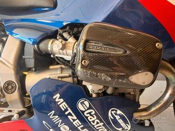 Unica imperfezione: piccola ammaccatura sul copritesta in carbonio, dovuta a una caduta da ferma, ben visibile in foto.