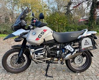 BMW R 1150 GS adventure con scarico Rhemus ammortizzatori Ghibellini e set di valigie laterali originali con supporti originali, scarico completo Rhemus con centralina dedicata, griglia, protezioni, fari supplementari, sella touratec comodissima, sospensione anteriore e posteriore regolabile Ghibellini (il top assoluto) moto stupenda, tenuta in condizioni manicali, tutti itagliadndi ufficiali bmw con fatture, libretti vari, veramente perfetta e ricchissima di accessori, kilometraggio bassissimo, comida e molto prestante, uno spasso da guidare, agilissima, pastosa, divertente e comoda. Possibile iscriverla ASI, NON SMEMBRO. QUALSIASI PROVA PRESSO DI ME A ASSAGO