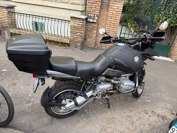 BMW GS1150 DEL 2003, 99700KM. ABS, cavaletto centrale e laterale, manopole riscaldate, copriserbatoio in pelle, presa elettrica per ricarica telefonino La sto usando quotidianamente quindi il kilometraggio puo variariare. La moto è perfettamente funzionante. Ha il serbatoio segnato come da foto, per questo il prezzo. Moto visibile a Roma.E dotata de tutti e tre bauletti originali BMW. Quello centrale ha un graffio nella calotta superiore (foto). Regalo alarma originale BMW con telecomando. Revisione apenna fatta, Prossima revisione 2028.