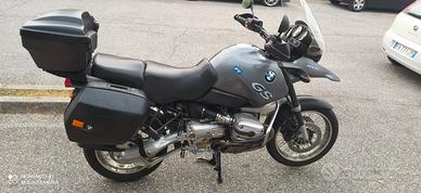 Ultimo modello R1150GS,ottime condizioni, praticamente inutilizzata da due anni per causa di forza maggiore, tenuta sempre in garage con alimentatore batteria e accensione periodica, mai incidentata, doppia accensione, iniezione elettronica, cerchi a raggi, manopole riscaldate, paracilindri tubolare in acciaio, cavalletto centrale, comprese 2 borse laterali e bauletto originali BMW, borsa ad ampia capienza sopra serbatoio, doppio cupolino (alto e normale), pneumatici al 70%, tagliando effettuato 1.000 km fa: motorino avviamento nuovo, batteria nuova, dischi freno e pastiglie nuovi, candele nuove, regolazione punterie, cambio filtri e olio.