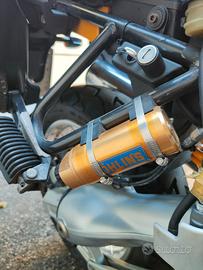 - ammortizzatori Ohlins anteriore e posteriore revisionati 3000 km fa (anteriore con regolazione precarico a ghiera + idraulica in estensione, posteriore con regolazione precarico sia con ghiera che con pomello idraulico + regolazione idraulica in estensione e compressione)