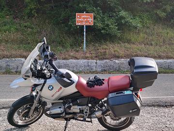 Vendo possente ghisona attualmente in uso, 110.000 km segnati quindi variabili, versione euro 1 mono candela. Moto tenuta sempre in garage, totalmente conservata, comprata nel 2021 con 61.000 km. Usata per ferie, gite, sparate e anche in città. Monta rialzi al manubrio e cupolino maggiorato WRS più deflettori laterali, si vende assieme a bauletto e valigie laterali. Appena sostituito batteria al gel, filtro aria, sincronizzato comando gas, pastiglia posteriore. Regolarmente tagliandata dal sottoscritto e da officina quando impossibilitato, con fatture. Gomme Mitas Terra Force al 70%. Motore mai toccato e lavori noti del boxer non ancora effettuati. Si vende a sfizio e non per esigenze impellenti. È iscritta storica ASI e ha certificato di rilevanza storica trascritto sul libretto, revisione 09/27, bollo pagato.
