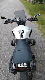 Vendo BMW R1150R versione NO ABS del 07-2005 esteticamente personalizzata. Meccanicamente in ordine (terminale Leovince titanio corto + filtri bmc + eprom centralina). Tagliandata completamente 1500 km fa (cambiate 4 candele, tutti i filtri, olio motore, olio freni, olio frizione, olio cambio e differenziale). Gomme in buono stato, bollata e revisionata fino ad Agosto 2026. AVVISO: il chilometraggio non è verificabile causa cambio strumentazione, la stima mi è stata fatta dal precedente proprietario. Astenersi perditempo e affaristi, solo seriamente interessati.