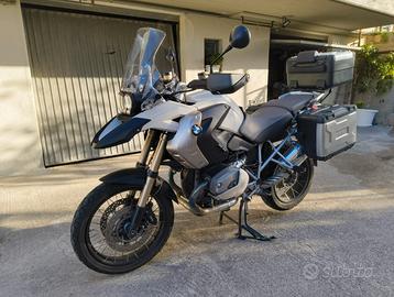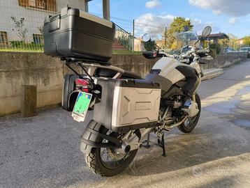 La moto è equipaggiata con ABS, ASC, ESA e manopole riscaldate. Gomme montate a luglio 2025 all'80%. Include il set di tre valigie rigide originali BMW e due borse morbide interne dedicate. Borsa da serbatoio originale BMW. Revisione giugno 2025.