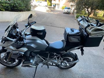 In ottime condizioni, vendo causa scarso utilizzo. BMW GS 1200. Immatricolata 2014, liquid cooled, 34.000 km. Tutti i pacchetti inclusi, cerchi a raggi, personalizzazione BMW di alcune componenti (paramani trasparenti, parafango posteriore brand BMW, inserti bianchi davanti al manubrio), coppia di faretti supplementari (+4), collocati sotto quelli in dotazione, sempre tagliandata. Top case, borse morbide da serbatoio e da posto passeggero, oltre a borsone capiente da legare sopra il top case.