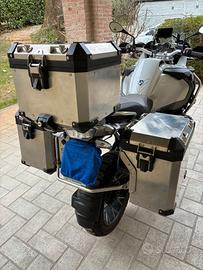 Vendo BMW R 1200 GS Adventure LC - ottobre 2015 - Km 60.709 - Tagliandi e manutenzione documentati su libretto originale - Prossima revisione ottobre 2027 - Gommata nuova (Pirelli Skorpion Rally Street) - Navigatore Garmin Zumo XT - Set completo di valigie in metallo originali BMW - Cassetta porta attrezzi con compressore portatile - Protezione originale anticalore e protezione del serbatoio olio freni posteriori - Caricabatterie/mantenitore di carica originale BMW