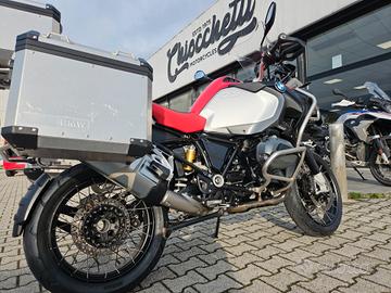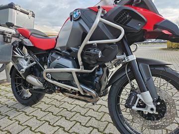 Cupolino, paramani, cavalletto centrale, paramotore tubolare in alluminio completo, faretti supplementari, supporto navigatore, tris di valigie originali BMW in alluminio.