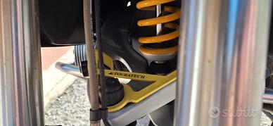 È dotata dei seguenti accessori: tris di valigie, mono ammortizzatore posteriore OHLINS, molla anteriore OHLINS, faretti supplementari TOURATECH, estensione paramani TOURATECH, supporto telelever TOURATECH, cupolino maggiorato fumè WRS, manopole riscaldate, paramotore, scarico piu terminale in titanio REMUS, estensione becco originale BMW, supporto telefono/GPS( non visibile in foto).