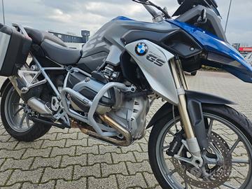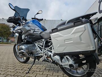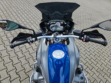 Cupolino maggiorato fumé, paramani, paramotori tubolari in alluminio completi, valigie laterali originali Vario BMW.