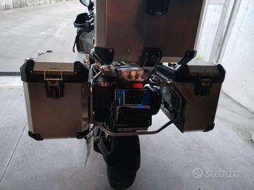 Vendo Bmw R 1250 Gs Adventure in allestimento Exclusive (Colore Verde Militare), anno 2019 perfetta, 30.700km, mai usata in off road ma esclusivamente città ed autostrada. Tris di valige alluminio originali coperchi vrappati neri con borse interne da asporto e schienale passeggero imbottito, cassetta per gli attrezzi con lucchetto, accessori wunderlich. Tutti i pacchetti (Confort, Touring, Dynamic), cruise control, Keyless ride, predisposizione per navigatore GPS, DTC (Dynamic Traction Control), ABS PRO, manopole riscaldate, cambio elettro assistito, RDC (sistema di monitoraggio pressione pneumatici), TFT con pellicola protettiva, hill holder, impianto antifurto. Moto sempre tagliandata in concessionaria BMW, regalo bollo 2026 e tagliando già pagato scadenza dicembre 2026; pneumatici sostituiti a circa 26.000 km. Moto sempre riposta in garage, visionabile previo accordo telefonico. Disponibile a qualsiasi controllo anche in Concessionaria Bmw. Non sono interessato a scambi, prezzo leggermente trattabile.