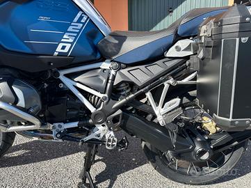 Completa di: top case e valigie laterali originali con plastica adesiva protettiva e maniglie in tessuto con borse interne a tenuta stagna,