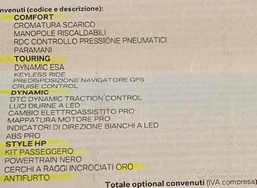 Vendo bmw r 1250 gs, moto immatricolata a luglio 2020 con 30340 km. Tutti i tagliandi sono stati fatti in concessionario ufficiale BMW, ultimo tagliando fatto ad aprile 2026. Pneumatici al 90%. Moto in otttime condizioni, compresa di tris di valige, valigia sul serbatoio, navigatore sattellitare e faretti. Super accessoriata, tutti gli optional sono elencati in foto.