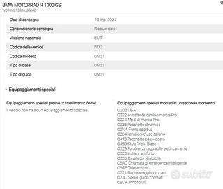 BMW R 1300 GS, acquistata a 06.24, con prima immatricolazione di 03.24 dalla BMW Motorrad Roma (Via Salaria), modello triplo black, con accessori di cui all'elenco allegato. Km attuali 5000. Condizione perfette (tenuta in garage ed utilizzata solo per qualche uscita fuori porta). Vendo per altre esigenze.