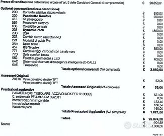 Accessori e prestazioni aggiuntive come da foto del contratto inserita, per l'appunto, tra le foto.