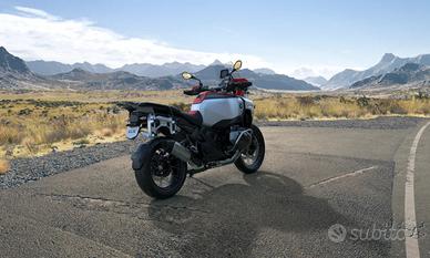 Scopri la nuova BMW R 1300 GS Adventure, una moto d'avventura progettata per offrire prestazioni eccezionali e comfort su ogni terreno. Equipaggiata con un motore da 1300 cc e 145 cavalli, garantisce potenza e affidabilità. Dotata di numerosi pacchetti speciali come il Touring, Dynamic e Enduro PRO, e optional di alta tecnologia come il cambio elettro assistito PRO e il sistema di chiamata d'emergenza intelligente (E-CALL). La trasmissione a cardano e la frizione a disco assicurano un'esperienza di guida fluida. Ideale per chi cerca avventure senza compromessi.