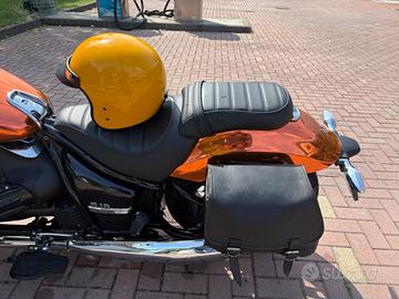 Moto wrappata di colore nero con cerchi forgiati bmw borsa cupolino pedane grandi