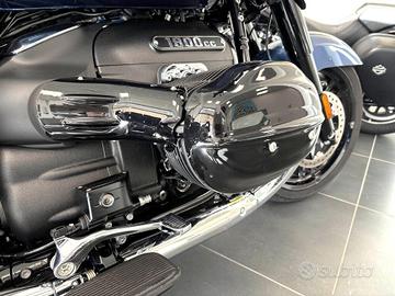 BMW R18 B, colorazione Gravityblue Metallic con finiture nero lucido.