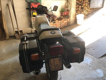 La moto è completa e totalmente originale, incluse le rare borse laterali rigide originali. Sempre tenuta in garage, è ferma da 20 anni e quindi non marciante. Necessita di un ripristino meccanico completo.
