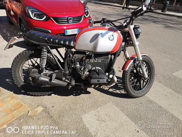Vendo splendida BMW R 45 scrambler colorazione Gulf. La moto monta il serbatoio della BMW R100, la forcella anteriore a steli rovesciati della DUCATI Monster 600, il freno anteriore (disco e pinze brembo) sempre della Monster, telaio accorciato e sedile in pelle nera biposto, carburatori Dell' Orto della Moto Guzzi Le Mans, colorazione Rosso/ Arancio e grigio. La moto è revisionata ed è perfettamente funzionante, la uso giornalmente.