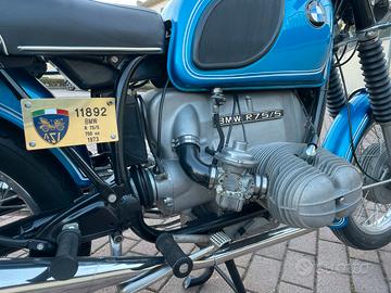 Vendo stupenda e perfetta moto d'epoca BMW R75/5 con raro e fantastico colore originale come tutto il resto, con libretto e targa originale dell'epoca, omologata ASI targa Oro, completa con doppie chiavi e 2 borse originali, condizioni perfette da vetrina, revisione ok, pronta all'uso, usata regolarmente nel primo periodo, poi sempre meno per mancanza di tempo. Vendo a malincuore. Solo se seriamente interessati, NO CURIOSI PERDITEMPO, non vendo per necessita' ma solo per inutilizzo. Prezzo leggermente trattabile. Primo contatto WhatsApp 348-5605830 Roberto.