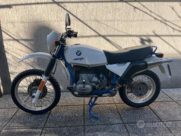 BMW R 80 GS Basic del 1997, perfettamente conservata e con 62.700 km all'attivo. Questo modello rappresenta un pezzo di storia motociclistica, prodotto in soli 3.000 esemplari, ed è l'ultimo a montare il leggendario motore boxer a 2 valvole per cilindro.