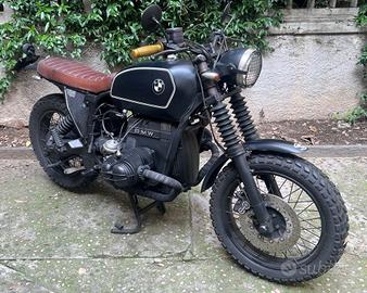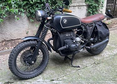 Bmw R80 special, anno 1993, km 57900, verniciatura completa carrozzeria e cerchi, faro anteriore con integrate luci spie e contakm, griglia faro, soffietti e nastro forcella, frecce custom, tappo serbatoio Monza style, sella realizzata artigianalmente in vera pelle con imbottitura e cuciture handmade, manubrio, specchietti, manopole vintage, riposizionamento blocco accensione, griglie laterali, modifica telaietto posteriore con parafango corto stop e portatarga, borsa morbida laterale, terminale, fasce collettori, presa mantenitore batteria, gomme tassellate. Bellissima e pronta all'uso!