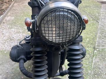 Bmw R80 special, anno 1993, km 57900, verniciatura completa carrozzeria e cerchi, faro anteriore con integrate luci spie e contakm, griglia faro, soffietti e nastro forcella, frecce custom, tappo serbatoio Monza style, sella realizzata artigianalmente in vera pelle con imbottitura e cuciture handmade, manubrio, specchietti, manopole vintage, riposizionamento blocco accensione, griglie laterali, modifica telaietto posteriore con parafango corto stop e portatarga, borsa morbida laterale, terminale, fasce collettori, presa mantenitore batteria, gomme tassellate. Bellissima e pronta all'uso!