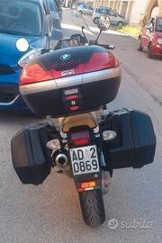VENDO no scambio o permute di nessun genere, moto BMW R850R immatricolata aprile 1998, già iscritta da me FMI. La moto come da foto ha 66648 km. Io sono il 2 proprietario. Gomme pirelli angel GT con 1000 km fatti. Tubi freni aeronautici con pasticche freni nuovi. La moto viene venduta completa di borse laterali originali BMW sia con versione strette che con versione larga complete di borse interne. Bauletto. Paga 50% di bollo all'anno. Anche l'assicurazione paga poco in quanto iscritta FMI.