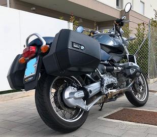 Vendo bellissima BMW R850R Limited edition con cerchi a raggi del 1999. La moto è tenuta perfettamente in condizioni ottime, iscritta ASI e in possesso della targa ORO per essere del tutto originale. Monta gomme nuove e batteria nuova, completa di valigie originali BMW e cupolino. altri accessori disponibili sono: telo impermeabile per copertura esterna, due selle originali da poter sostituire (fodere in pelle guidatore e passeggero).