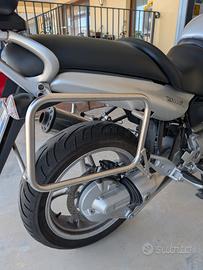 BMW R 850R del 2006. Km originali e sempre tagliandata in officina BMW. Comprata da me nel 2023 con soli 6300km fatti dal precedente proprietario (presa per festeggiare pensione ed usata solo per giri cittadini in zona). Fatto tagliando completo (e documentabile) quando l'ho presa, in officina BMW MOTORRAD come se la moto avesse avuto 40.000km, quindi approfondito e con tutto il cambio di cinghie, filtri e quant'altro. Fatto l'anno scorso cambio completo dei tubi freno con sostituzione di tubi in treccia come si vede in foto. Equipaggiata, sempre lo scorso anno, con telaio completo e valigie in alluminio della UNIT GARAGE da 47lt l'una. Vendo solamente per passaggio a categoria superiore. FACCIO BEN PRESENTE CHE IL PREZZO NON È TRATTABILE QUINDI VALUTATE PRIMA DI CONTATTARMI.