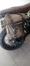Attacchi portaborse, destro e sinistro, con 1 borsa laterale completa di busta porta utensili vintage e portapacchi, tutto marca Unit Garage.