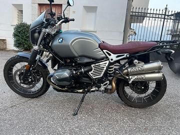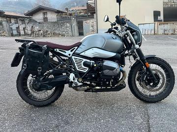 Vendo moto BMW R NITE-T SCRAMBLER con garanzia ufficiale fino a marzo 2028. Tagliandata e bollo pagato. Accessiorata con pezzi originali come da foto piu pezzi installati extra: cupolino, piastra para motore, fianchetti in acciaio, portapacchi, borsa laterale destra.