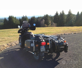 Vendo la compagna di tante avventure un bmw r100 cs dall'aspetto vintage ma che nasconde una moto grintosa con tanta potenza, tenuta maniacalmente con tanti accessori per affrontare viaggi lunghi e impegnativi, dal doppio impianto elettrico con doppia batteria alle manopole riscaldate a tre taniche metalliche esterne per la benzina per affrontare qualsiasi viaggio con tranquillità alle pedane a riposo all'impianto elettrico all'interno del sidecar il quale è stato anche lui accessoriato con ammortizzatori speciali e disco frenante mentre la moto a il doppio disco freni anteriore e freno a disco posteriore della Brembo, faro di profondità a LED a barra sul sidecar per illuminare a giorno la strada piu buia, set di borse e bauletto rigido non in foto, forcella a herls per non temere le strade piu difficili.