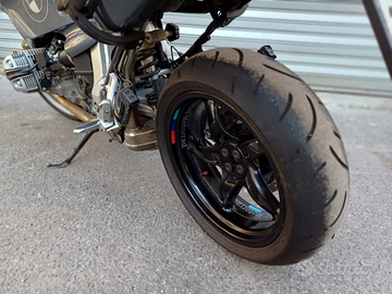 Vendo per inutilizzo moto veramente perfetta anno 2002 km 79.000 tagliandata gommata tubazioni freno in treccia, monoposto aggiuntivo, borse in tinta ,manubri comfort e sport , sella rifatta moto completamente riverniciata con grafiche Randy Mamola, particolari in carbonio ,cavalletto per manutenzione