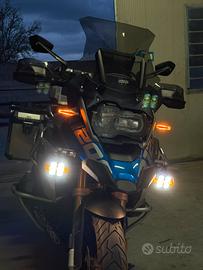 Moltissimi accessori extra montati afermarket: barre alte paraserbatoio, faretti doppia funzione con doppi tasti su manubrio tipo originali, frecce anteriori e posteriori LED tipo R 1250 con luci DRL, adesivi aggiuntivi, tris valigie originali adventure BMW in alluminio rivestite completamente con pellicola argento effetto alluminio e foderate internamente.
