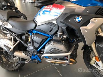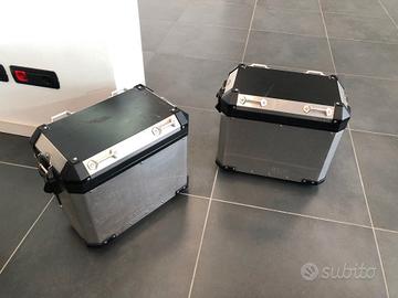Completa di tre bauletti alluminio BMW con borse interne e maniglie di trasporto per i bauletti.