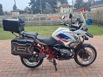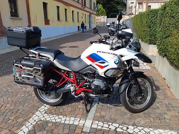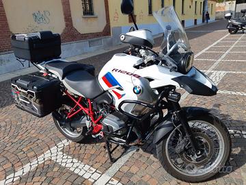 Vendesi per cambio moto BMW R1200GS Rallye anno 2012. Moto perfetta mai caduta, senza graffi o danni, sempre tagliandata in officina BMW, versione full option con ABS, ESA marmitta Akrapovic, manopole riscaldate, RDC pneumatici, antifurto, indicatori direzione bianchi piccoli, dotata di set 3 borse, paramotore, paracarene, faretti alogeni aggiuntivi, puntale nero, piastra Givi per cavalletto laterale. Vendita diretta in tempi brevi per cambio moto, no permuta.