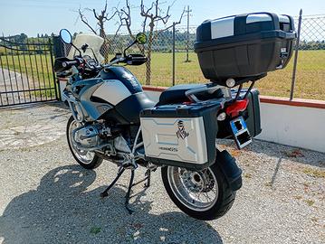 Per subentrati problemi di salute vendo a malincuore BMW R1200GS del 2007 con 71350 km. Revisione regolare fino 04/2027. Svariati accessori tra i quali: Borse laterali originali BMW, top-case GIVI da 52 litri, porta navigatore Wunderlich, paramotore e paraserbatoio Hepco & Becker, cerchi a raggi, piastra proteggi coppa olio, batteria nuova appena montata, ecc. Possibilità di acquistare anche tantissimi accessori quali giacche uomo/donna, tute da pioggia, scarpe, calzari, paraschiena, ecc., ad un massimo del 30% del loro valore. Purtroppo dopo 4 moto siamo dovuti passare al camper, quindi non servono più.