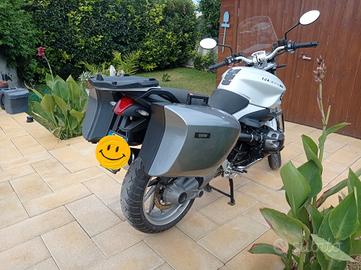 km 59000 moto perfetta nessun lavoro da fare,ABS ESP esa manopole riscaldate sensori gomme tris valige,cardano revisionato con cuscinetto e paraolio ruota sostituito olio cambio sostituto olio cardano e olio motore più filtri batteria yuasa nuova motorino di avviamento revisionato gomme 90 % due visiere una alta e una sport vendo per cambio tipologia moto qualsiasi prova con il vostro meccanico il prezzo è compreso di passaggio di proprietà .