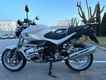 BMW R1200R con ABS, ASC controllo automatico della stabilità, ESA regolazione elettronica dell'assetto perfettamente funzionante (comfort, normale, sportiva) con regolazione del precarico molle, moto in ottimo stato generale, anno 2008, 80 kw 109 cv, manopole riscaldate a due intensità, frecce led, sella ricamata in memory, allarme originale BMW, para cilindri e supporto borse laterali e supporto top case, utilizzata esclusivamente nel periodo estivo, tenuta sempre in box, bollo pagato fino a Luglio 2026. Separatamente vendo borse laterali originali BMW, top case con schienalino 28L e scarico AKRAPOVIC.