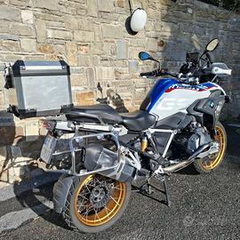 BMW R 1250 GS anno 2019 56000 km full optional, tutti e tre i pacchetti disponibili, comprese anche le due borse laterali originali, come bauletto centrale, e tutto il set di borse morbire interne. Ulteriori aggiunte placche copri cilindri e faretti opzionali Twalcom. Sempre custodita in garage al chiuso, utilizzata tutto l'anno. Sempre tagliandata in concessionario ufficiale BMW. Gomme con meno di 2500km montate prima dell'estate. Batteria cambiata 2025.