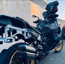 Per completo inutilizzo e acquisto camper, vendo Bmw R1300 GS ADVENTURE TRIPLE BLACK 31.03.2025 km 3900 praticamente nuova full come da allestimento top Bmw con ulteriori accessori Bmw: -Cupolino e deflettori bruniti; -Protezione faro ( WRS ); -Griglie protezione faretti supplementari; -Valigie laterali con rivestimento interno; -Reti interne valigie; -Top case con rivestimento; -Riser manubrio; -Protezione telelever; -Borsa serbatoio; -Borse laterali 12 litri; -Griglie protezione radiatori; -Tamponi protezione barre paramotore; -Scarico Akrapovic; -Grafiche Triple Black; -Carpuride 7" W702B; -Sella comfort completamente rifatta e personalizzata; -Estensioni paramani fumè; -Faretti supplementari 9.000 lumen; -Borse laterali anteriori fianchetti; -