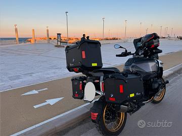 Per completo inutilizzo e acquisto camper, vendo Bmw R1300 GS ADVENTURE TRIPLE BLACK 31.03.2025 km 3600 praticamente nuova full come da allestimento top Bmw con ulteriori accessori Bmw: -Cupolino e deflettori bruniti; -Protezione faro ( WRS ); -Griglie protezione faretti supplementari; -Valigie laterali con rivestimento interno; -Reti interne valigie; -Top case con rivestimento; -Riser manubrio; -Protezione telelever; -Borsa serbatoio; -Borse laterali 12 litri; -Griglie protezione radiatori; -Tamponi protezione barre paramotore; -Scarico Akrapovic; -Grafiche Triple Black; -Carpuride 7" W702B; -Sella comfort completamente rifatta e personalizzata; -Estensioni paramani fumè; -Faretti supplementari 9000 lumen; -Borse anteriori fianchetti;