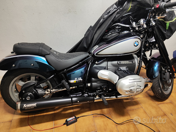 BMW r18 condizioni da vetrina con pacchetto opzione 719 che comprende colore dust galaxy bellissimo da vedere dal vivo con tonalità che cambiano in base alla luce dal verde al Blue metallizzato con riflessi viola fatto trattamento ceramico x non rovinarlo copri testa e copri motore più cerchi in lega colore grigio canna di fucile costo del pacchetto 3600 euro sedile anteriore più posteriore opzione 719 costo 850 euro hil start controll manopole riscaldabili Cruise controll retromarcia elettrica appena montati scarichi originali akrapovic neri BMW originali con certificato di omologazione dal sound veramente bello costati 1800 in concessionario BMW con fattura allegata ,consegno