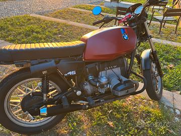 Moto BMW R45 modificata cafe racer. Alcune parti originali sono disponibili tra cui scarichi originali. Anno immatricolazione 1981, revisione eseguita a giugno 2025 e valida fino a giugno 2027.
