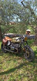 BMW R45 scrambler-cafè racer anno 1979, modificata mantenendo telaio e ciclistica. Perfettamente funzionante e pronta all'uso. Batteria nuova, frizione revisionata, carburatori revisionati. Sostituito alcuni componenti meccanici con ricambi ufficiali bmw, rimessa come a nuovo. Revisione ministeriale 09/23, esente da bollo. In possesso di tutte le fatture e documenti dei lavori eseguiti. Prezzo leggermente trattabile. La moto si trova in provincia di Parma. Solo mess whatsapp.